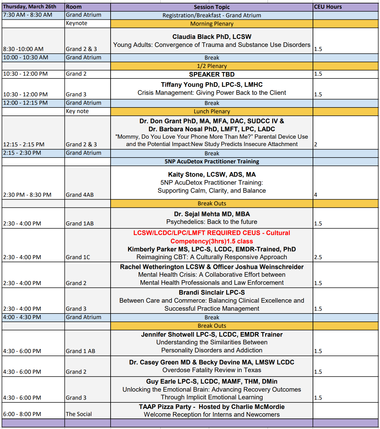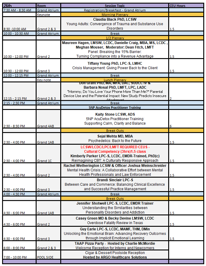 The DFW Behavioral Health Symposium (DFWBHS) organization provides support for and facilitates all aspects of the annual conference for both Dallas and Fort Worth Chapters of TAAP (Texas Association Addiction Professionals) and their members.
